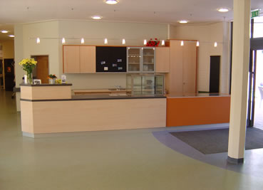 _ausführung in ahorn, schichtstoff, _linoleum _integrierte kühltheke _farbkonzept mit truecolor, zürich _entwurf und fertigung: _m. fedder _werkstatt für möbel + einrichtung _2003
